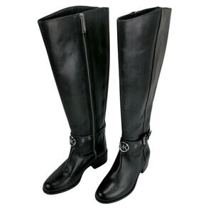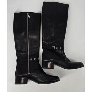 Michael Kors Heather Black Knee High Riding Boot Women's 8 Silver Front Logo