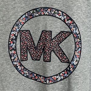 Heather gray sweatshirt with a floral MK logo. Casual and chic. Sweater is in excellent used condition.