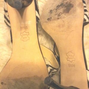 Animal Print fur with 4in heels. Strap across toes and a cross strap