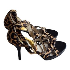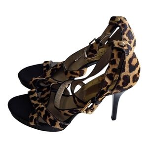 Michael Kors Heels Womens 10M Animal Print Fur Evie Natural Haircalf Stilleto