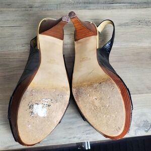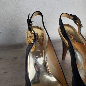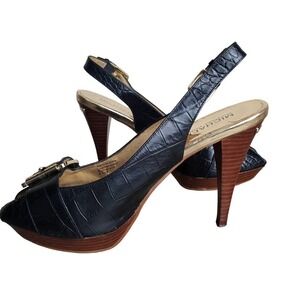Michael Kors Heels Womens Size 8.5 Black Leather Croc Print Slingback Stacked