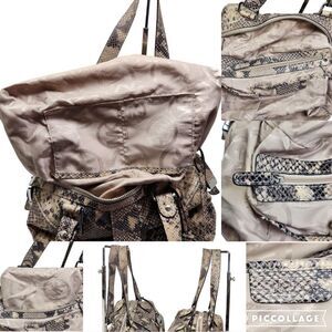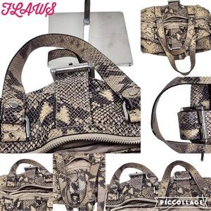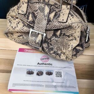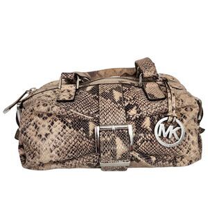 Michael Kors Heidi Dark Sans Satchel tan brown black silver snake print bag 2009