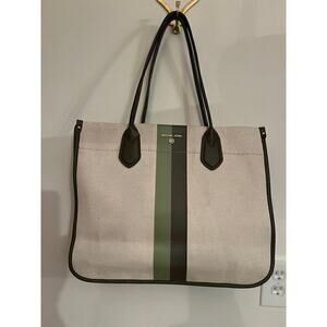 Michael Kors Heidi Large Tote Stripe Canvas Handbag