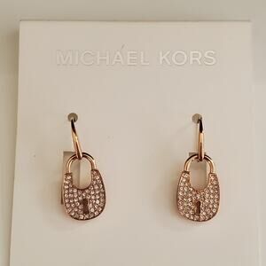 Michael Kors padlock earrings have pave crystals in a rose gold tone setting. Approximate 1 inch drop with a hook backing. New with tags.