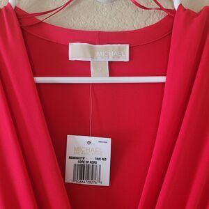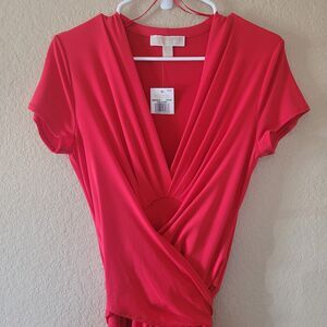 Michael Kors High-Low Faux-Wrap Dress True Red Size Medium Short Sleeve Nwt
