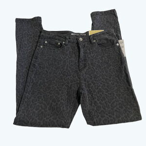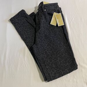 Michael Kors High-Rise Jeans Leopard Print Skinny Black Denim Selma Size 6