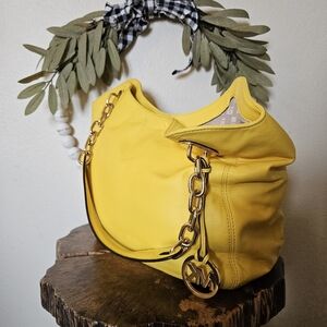 Michael Kors Hobo Bag Fulton Large Chain Yellow Shoulder Tote Leather