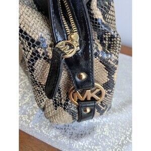 Michael Kors Honey Black Patent Leather Snake Python Embossed Tote Shoulder Bag