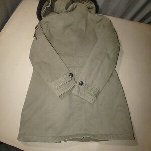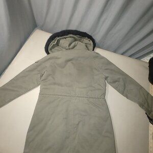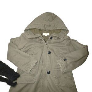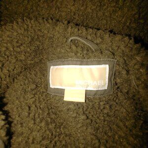 Michael Kors Hooded Parka Coat Size Large Olive Faux Fur Trim Sherpa Lining
