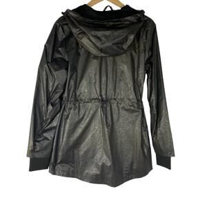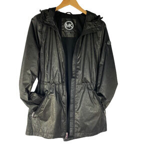 Michael Kors Hooded Rain Jacket Women S Black Cinch Waist Logo Gorpcore NWOT