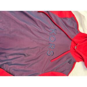 Michael Kors Hoodie Pullover, Men's Small, Red/Blue Colorblock Mesh Overlay