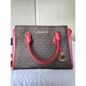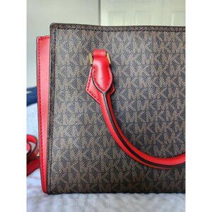 Michael Kors Hope Medium Messenger Bag Flame Red & Brown Satchel Purse w/ Strap