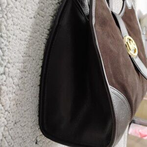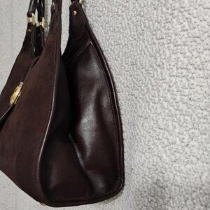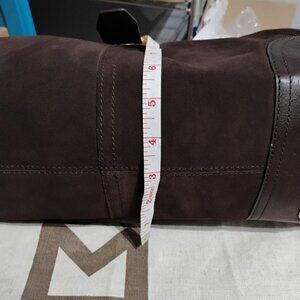 Crafted from luxurious walnut brown suede leather, this tote boasts a spacious interior perfect for everyday organization