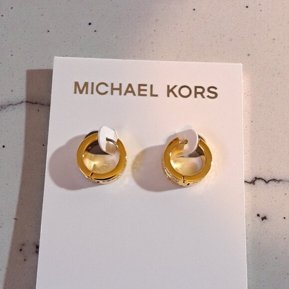 Tags, Michael Kors, Huggie Earrings, Gold, Rhinestone, Luxury.