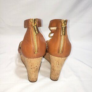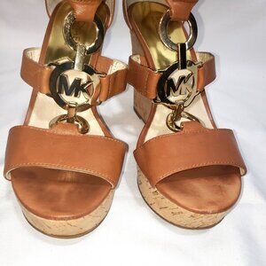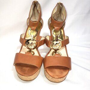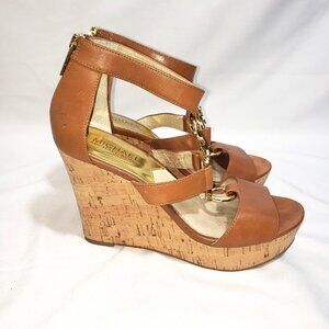 Michael Kors Hyden Tan Leather Cork Wedge Sandals
