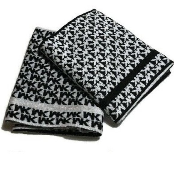 Scarf features MK iconic signature logos on a cozy, versatile woven scarf. Reversible infinity loop scarf