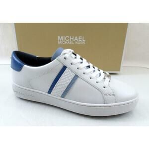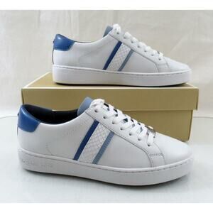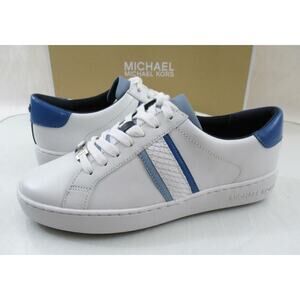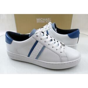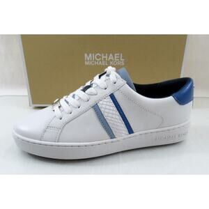 Michael Kors Irving Stripe Lace Up Designer Sneakers MK Logo White /Blue Size 10