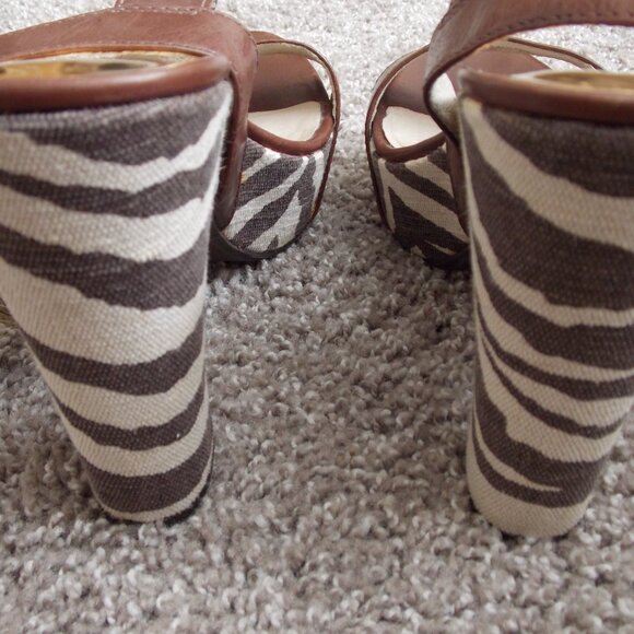 Michael Kors Ivana Mocha Zebra Animal Print Canvas Platform Sandals Heels
