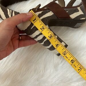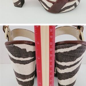 Michael Kors Ivana Mocha Zebra Animal Print Canvas Platform Sandals Heels 8.5