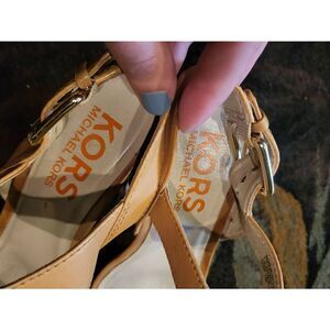 Michael Kors Ivana Sandals Women's 7 Tan Leather Strappy Cork High Heel