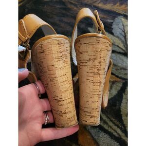 - Cork platform high heels, about 1" platform and 4.5" heel