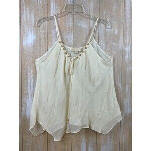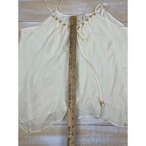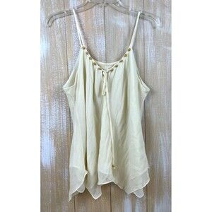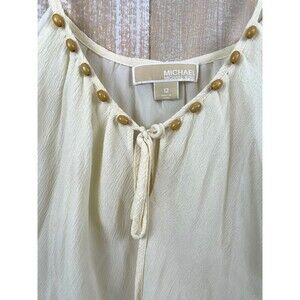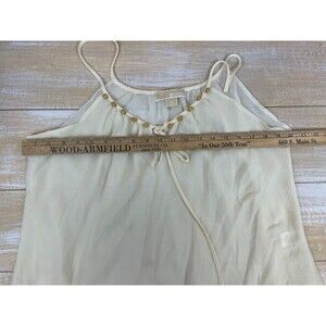 Michael Kors Ivory Crepe Silk Blend Handerkerchief Boho Lined Cami with Beads Size 12