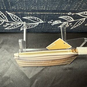 Sophisticated ivory card holder with croc-embossed design. Features iconic Michael Kors logo.