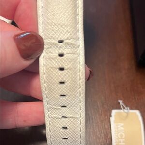Stylish Michael Kors watch with an ivory strap and gold detailing. Ideal for versatile wear. Needs a new battery