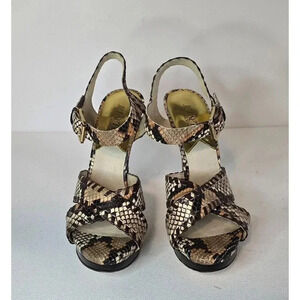 * Michael Kors ET SET 6 Odessa 7.5 M Leather Snake Print Ankle Buckle Strap HEELS Sandals