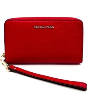 Michael Kors JST LG Flat MF Phone Case Wallet NWT Red/Gold