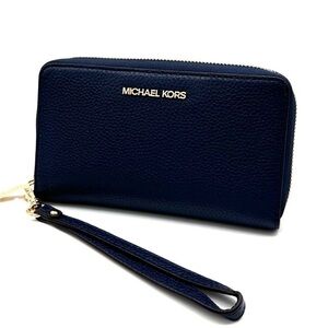 Michael Kors JST LG Flat MF Phone Case Wallet Navy Blue (NWT)