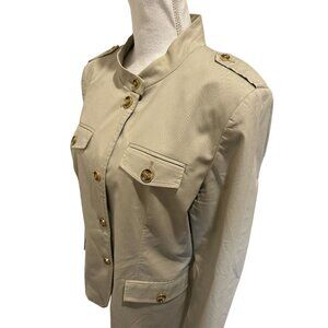 Stay stylish with the Michael Kors Women's Size 14 Military Style Jacket/Blanket. This tan, lined jacket features a button-down front and pockets for convenience.