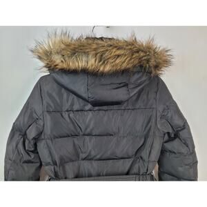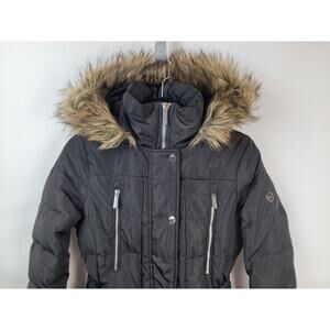 Michael Kors Jacket Women's Black Down Parka Coat Belted Faux Fur Hooded Sz XXS