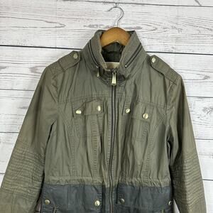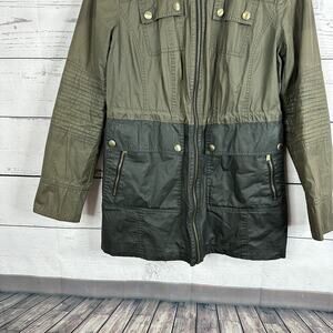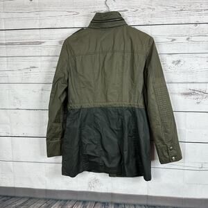 Michael Kors Jacket Womens Small Black Green Waxed Moto Hooded Military Coat