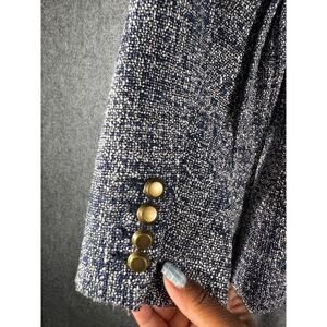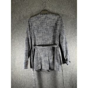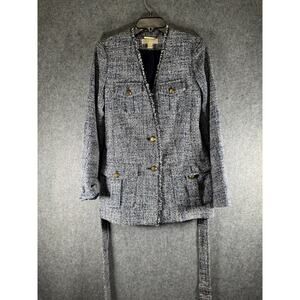 Michael Kors Jackets Women 2 Blue Fringe Tweed Belted Blazer Old Money Preppy