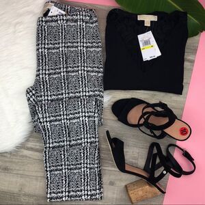 • Michael Kors Jacquard Check Plaid Tweed Cropped Slim Pants