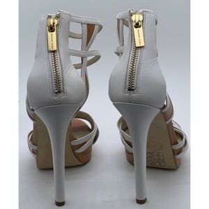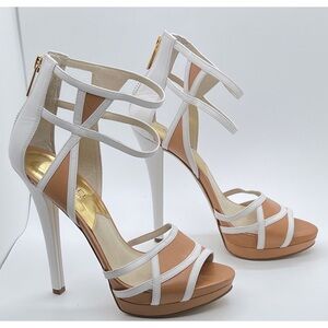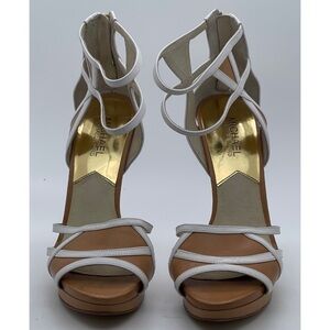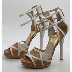Michael Kors Jaida Back-Zip Platform Heels Stilettos - Optic White/Suntan Sz 8M