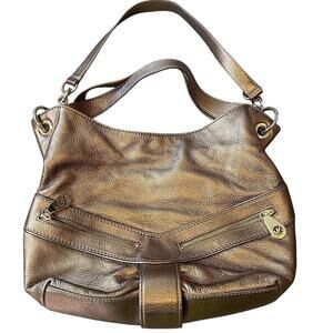 Michael Kors Jamesport Gold Leather Zipper Pocket Chain Strap Shoulder Purse Bag