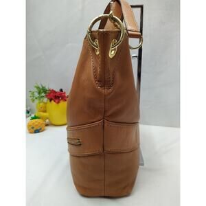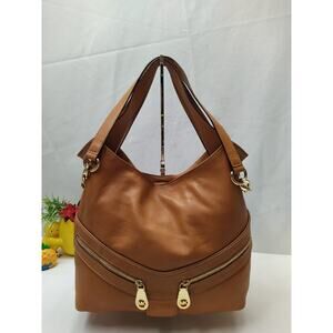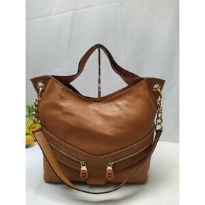 Michael Kors Jamesport Tan Brown Leather Zipper Pockets Chain Strap Shoulder Bag