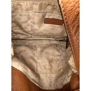 The Michael Kors Jamesport handbag is a medium-sized hobo bag made of leather in a solid tan-brownish color. It features gold accents and a magnetic closure. With a width and height of 12.5", a depth of 4.5", and inner pockets, this stylish handbag is perfect for women who appreciate classic and timeless pieces from the Michael Kors brand.