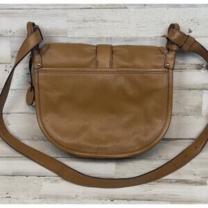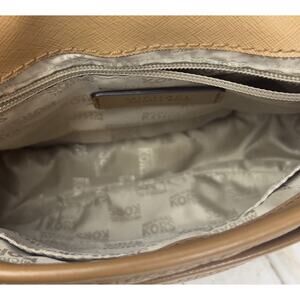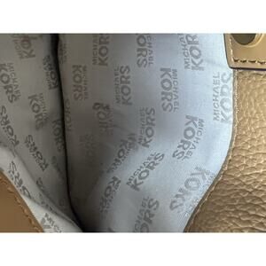 Michael Kors Jamie Large Tan Acorn Leather Saddle Bag. This beautiful leather bag is in excellent condition. Small stain in outside pocket shown in photo-barely visible. Leather has just been conditioned. Beautiful purse!