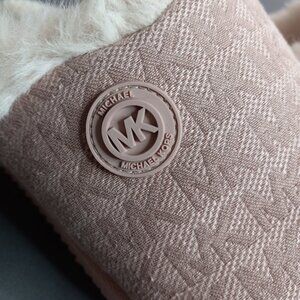 Michael Kors Janis Faux Fur-Lined Logo Jacquard Slipper 9 M Soft Pink