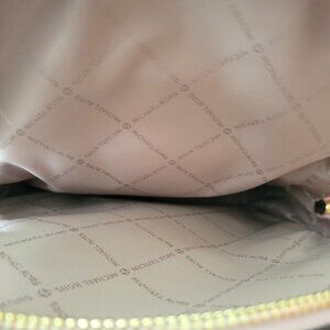 2 toned Powdered Blush MK Logo patterned coated canvas and Powdered Blush smooth faux leather