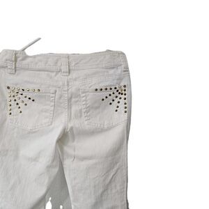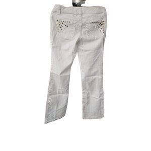 The Michael Kors Jeans are a stylish pair of women's white denim pants in size 4. They feature a classic solid pattern with a zip closure . Made of cotton denim fabric, these jeans have a regular fit and a -pocket design with the Michael Kors logo accent. Perfect for the summer, fall, and spring seasons, these flare-style jeans are a fashionable and versatile addition to any wardrobe. Machine washable for easy care, these jeans are a must-have for any woman looking for a designer touch to her everyday outfit.