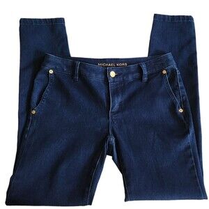 Michael Kors Jeans Denim Blue Navy Stretch Skinny Straight Gold Logo High Rise 2