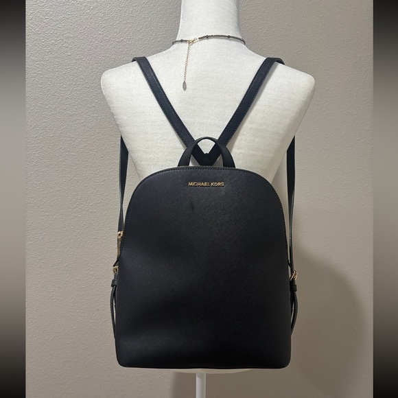 Chic black backpack by Michael Kors. Features minimalist design and adjustable straps