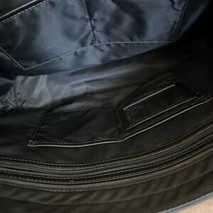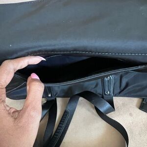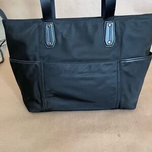 Stylish black tote bag by Michael Kors. Features a front zipper pocket. Elegant and versatile design.