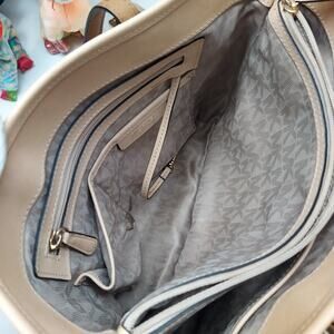 Michael Kors Jet Set Beige Leather Double Handles Tote Shoulder Bag