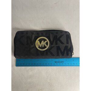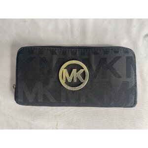 Michael Kors Jet Set Black Canvas Wallet – Clutch with Gold MK Logo