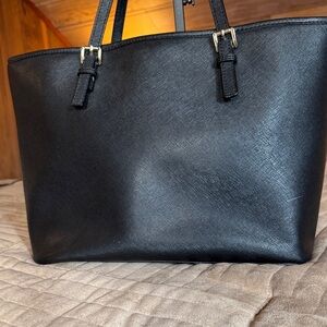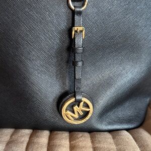 Michael Kors Jet Set Black Leather Tote Bag w/ Gold Logo Charm🌸